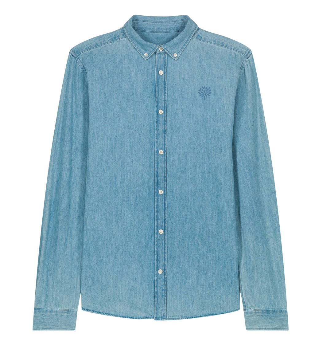 Pánská džínová košile ve světle modré barvě. Malé logo stromečku PORG vyšité tmavě modrou nití.