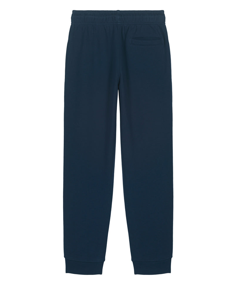 Dětské tepláky v tmavě modré barvě. Dvě postranní kapsy, šňůrky v pase na utažení. Vyšité logo PORG.
