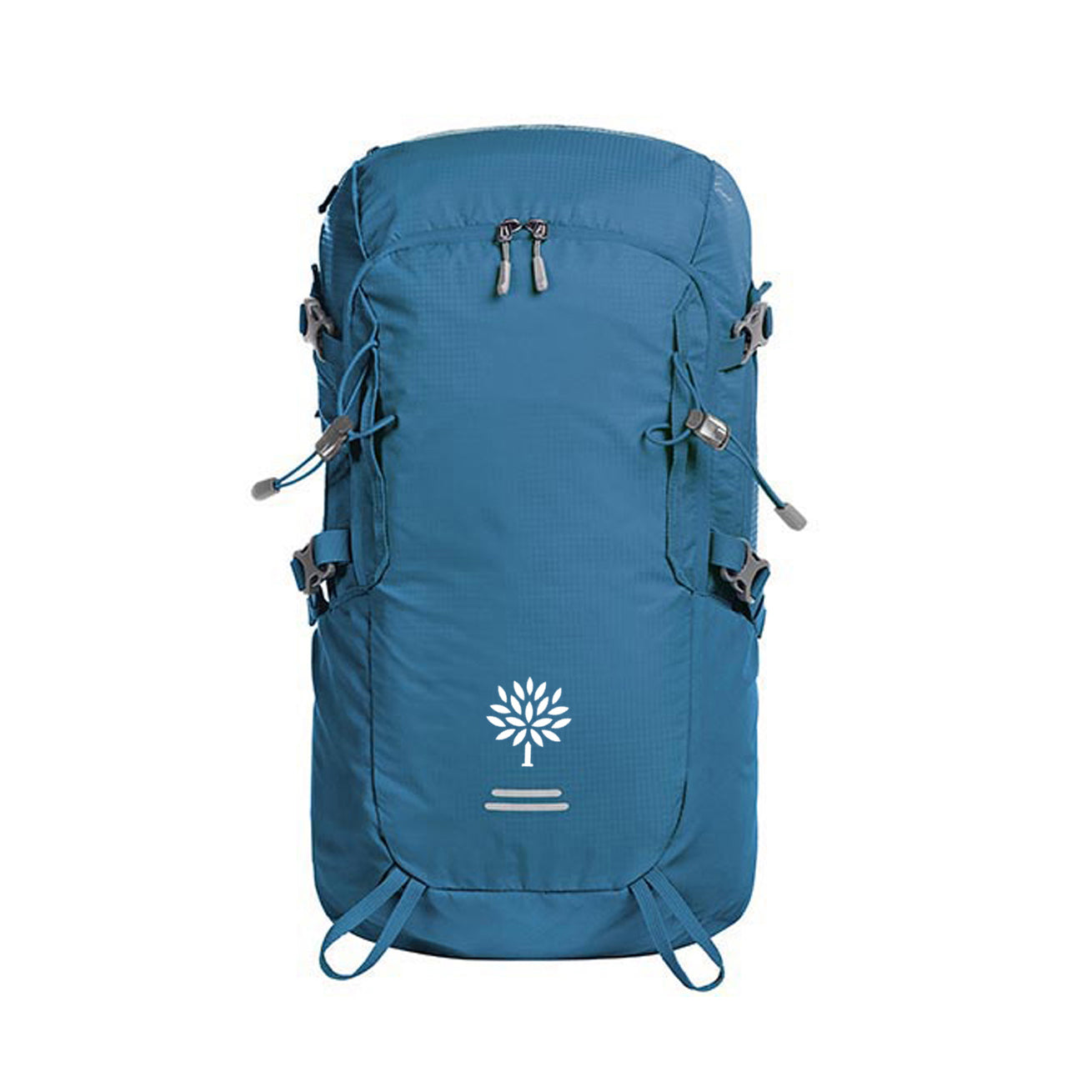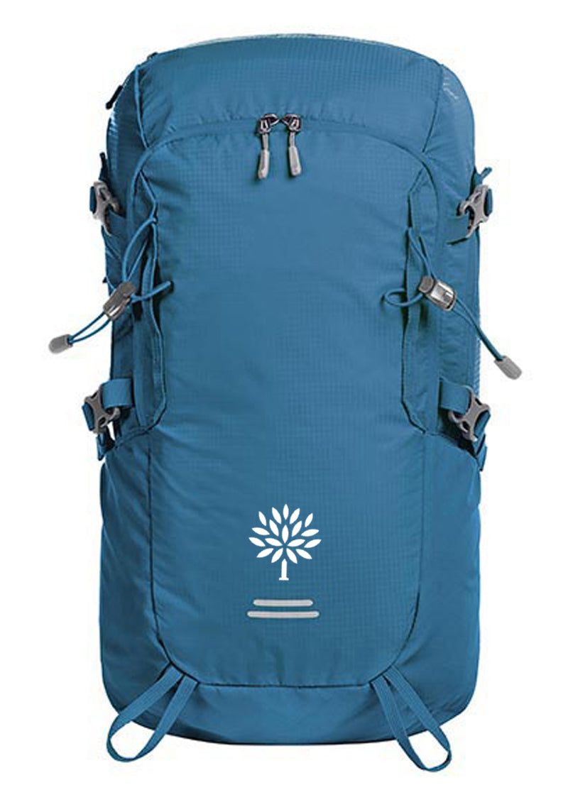 Modrý sportovní batoh s potiskem loga strom školy PORG.