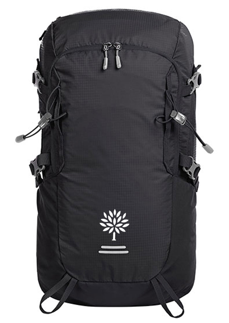 Černý sportovní batoh s potiskem loga strom školy PORG.